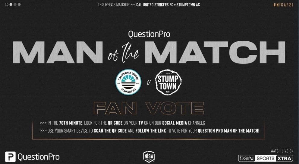 This season we’ll be enabling online voting for the Man of the Match for fans in the stadium as well as those watching online. Traditionally, the Man of the Match is selected by the broadcast team, and in some cases from in-stadium votes. With NISA’s new online voting capability via QuestionPro CX, fans around the world will be able to cast their votes, giving players of both teams an equal opportunity for recognition.